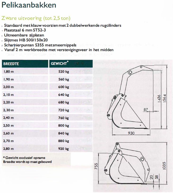 Pelikaanbak Devos 65658 Beschrijving Zware uitvoering Voor loaders met een hefkracht tot 2.5 Ton Breedtes: 1,80 Meter – 2,80 Meter Specificaties Merk: Devos Conditie: Nieuw Neem contact op: +31 (0)493 - 31 22 31
